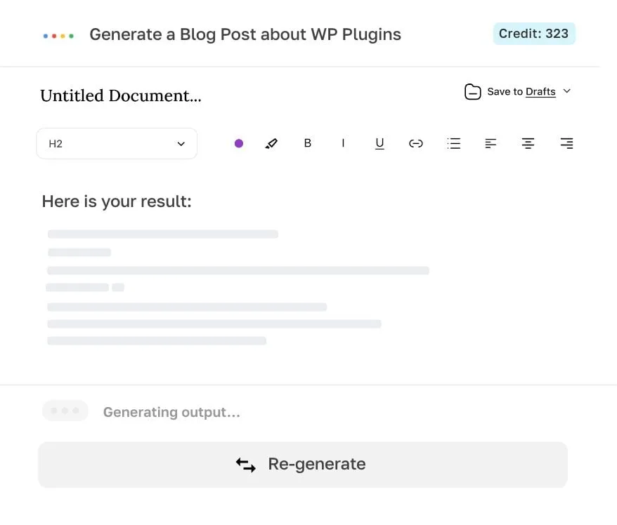 Export generated content as plain text, PDF, Word or HTML easily.